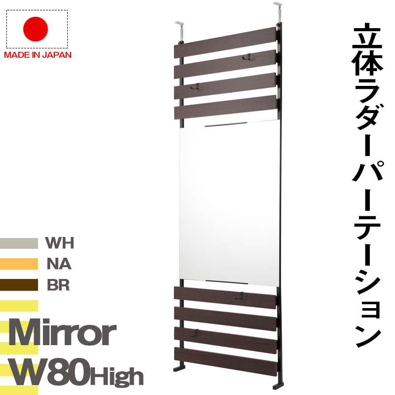 鏡 突っ張りラック つっぱり 壁面収納 ラダーラック ミラー 突っ張り棒 ラック スリム 突っ張り 姿見 姿見鏡 木製 おしゃれ かがみ リビング 部屋 幅80
