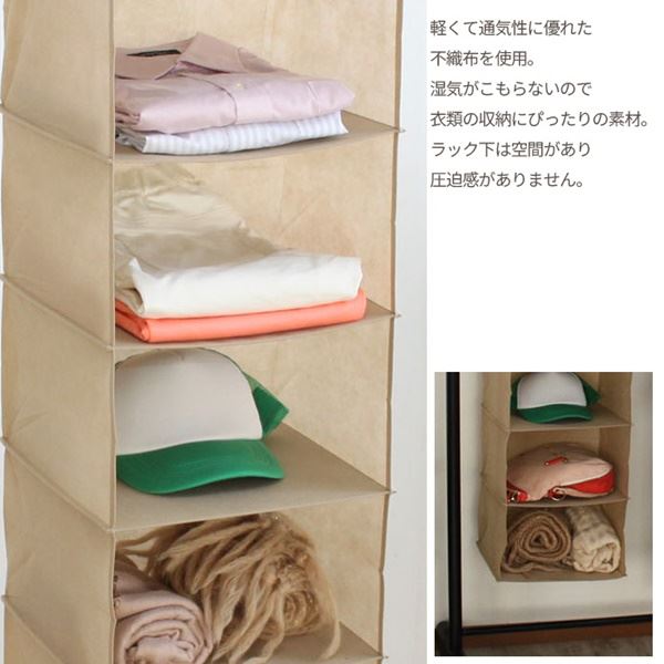 衣類収納 6段 約幅31cm ベージュ パイプ 吊り下げタイプ 折りたたみ 吸湿性 通気性 軽量 不織布 ハンガーラック クローゼット