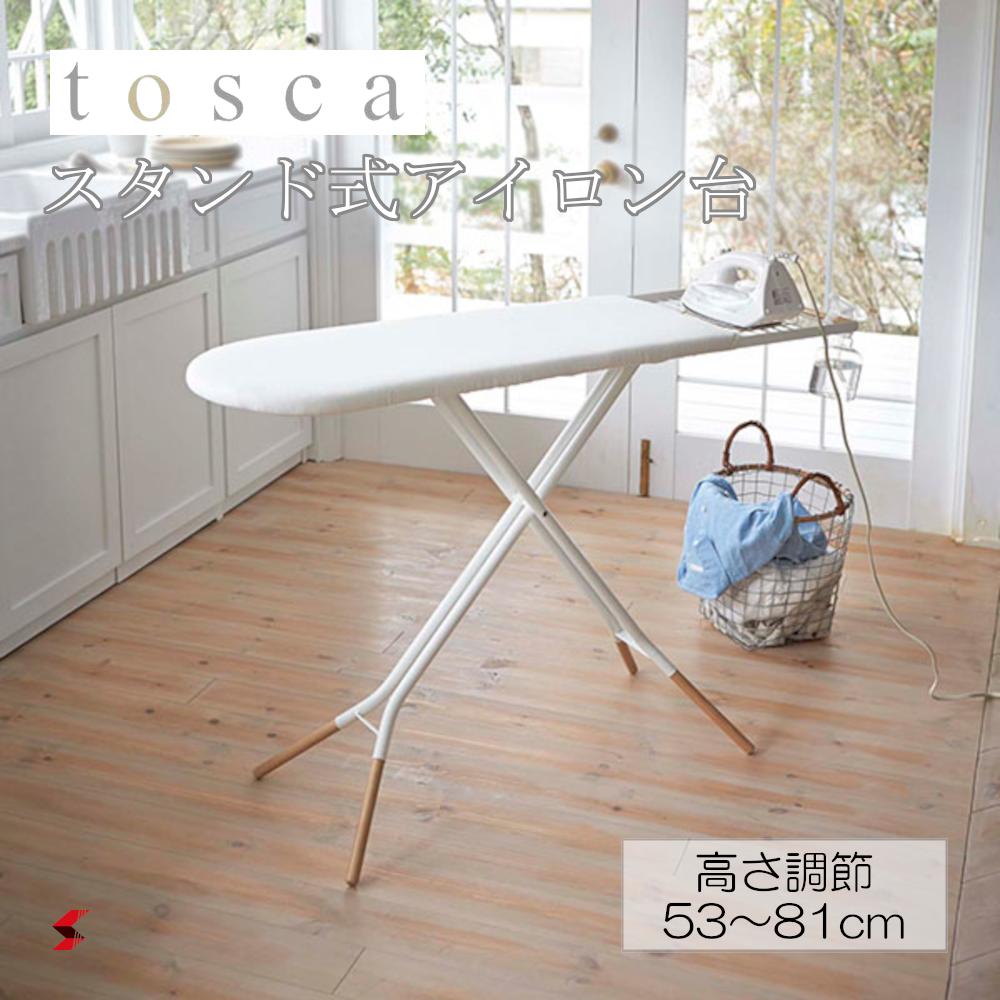 tosca スタンド式アイロン台 トスカ ホワイト アイロン台 アイロン置き アイロンがけ アイロンかけ スタンド式 折りたたみ 衣類スチーマー 折り畳み ハンガーラック シャツ おしゃれ ナチュラル シンプル スリム 安定感 北欧 山崎実業 〈4903208031523〉