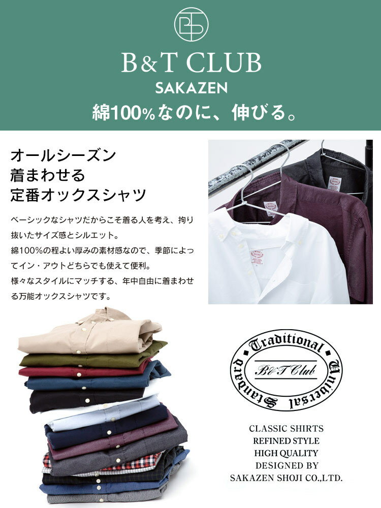大きいサイズ メンズ B&T CLUB ストレッチ ボタンダウン オックスフォード 長袖シャツ [2L-10L相当] メンズショップサカゼン