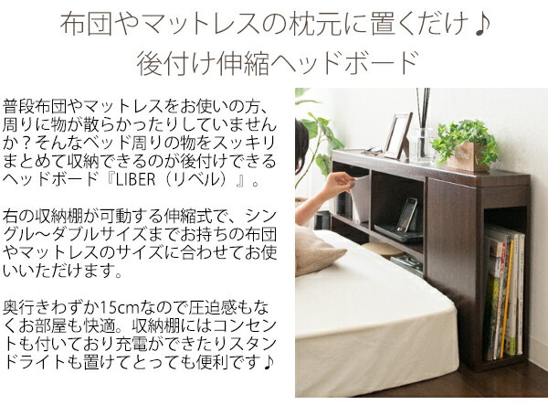 【ランキング獲得】伸縮ヘッドボード LIBER リベル ベッド ベッドフレーム布団やマットレスの枕元に置くだけの簡単設置♪HB-1014 伸縮式 後付け 収納棚 コンセント 簡単設置 宮棚 マガジンラック 収納ラック 奥行15cm